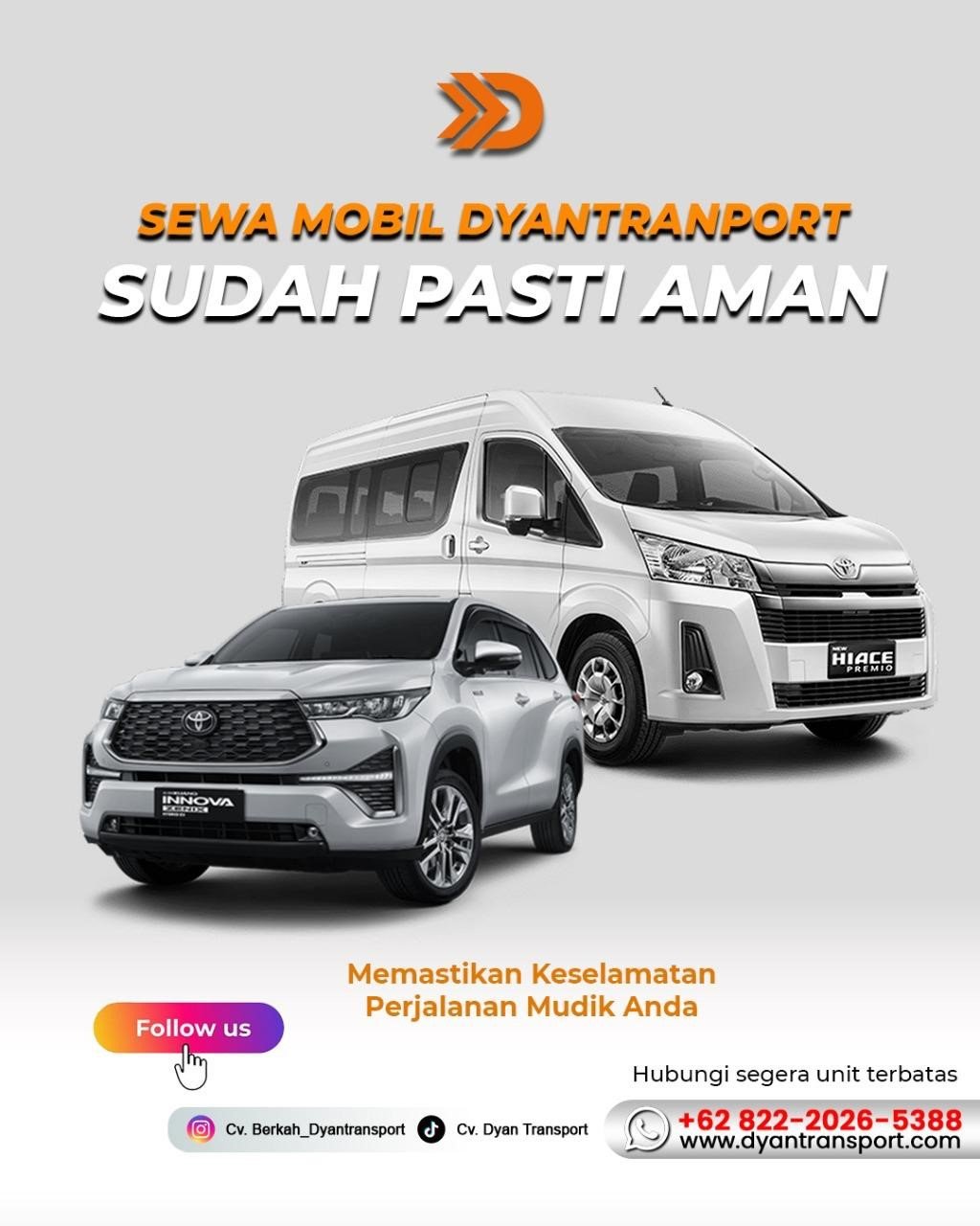 Tim admin Dyantransport siap melayani dengan cepat dan ramah untuk memberikan armada terbaik sesuai kebutuhan perjalanan Anda. Percayakan perjalanan anda kepada sewa mobil kami.! kami selalu memberikan layanan sewa mobil yang murah, berkualitas, dan terpercaya di Semarang dan sekitarnya.